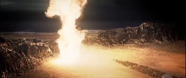 Duas coisas precisam ser destacadas aqui: a primeira é que além da coluna havia também um mensageiro celestial que foi destacado para ser o “guia” do povo de Israel; ele iria na função de “batedor” oficial dos céus destacado para conduzir o povo em segurança ao seu destino. A segunda coisa a destacar aqui é que a coluna de nuvem agia de forma muito curiosa, pois para os egípcios que estavam no encalço dos judeus ela agia como um bloqueio e gerava escuridão; já no lado israelita a nuvem agira como um luminar que brilhava de forma a clarear o trajeto À frente deles.