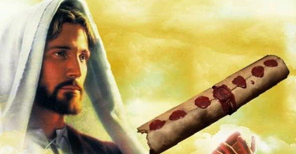 E vi na mão direita do que estava assentado sobre o trono um livro escrito por dentro e por fora, selado com sete selos. E vi um mensageiro forte, apregoando em alta voz: Quem é digno de abrir o livro e desatar os seus selos? E ninguém nos céus, nem na terra, nem debaixo da terra, podia abrir o livro, nem olhar nele. E eu chorava muito, porque ninguém fora achado digno de abrir o livro, nem de o ler, nem de olhar nele. E disse-me um dos anciãos: Não chores; eis aqui o Leão da tribo de Judá, a raiz de David venceu para abrir o livro e desatar os seus sete selos. E olhei, e eis que estava no meio do trono e dos quatro animais e no meio dos anciãos um Cordeiro que estava como matado, e tinha sete chifres e sete olhos: que são os sete espíritos de Elohim enviados a toda a terra. E veio, e tomou o livro da mão direita do que estava assentado sobre o trono. E, havendo tomado o livro, os quatro animais e os vinte e quatro anciãos prostraram-se diante do Cordeiro, tendo todos eles harpas e salvas de ouro cheias de perfumes, que são as orações dos santos. E cantavam um novo cântico, dizendo: Digno és de tomar o livro e de abrir os seus selos, porque foste morto e com o teu sangue redimiste para Deus homens de toda tribo, e língua, e povo, e nação; e para o nosso Elohim nos fizeste reis e sacerdotes; e reinaremos sobre a terra. Então olhei, e ouvi uma voz de muitos mensageiros ao redor do trono, e dos animais, e dos anciãos: e era o número deles milhões de milhões e mil de milhares, que com grande voz diziam: Digno é o Cordeiro, que foi morto, de receber potência, e riquezas, e sapiência, e força, e honra, e glória, e louvor. E ouvi a toda criatura que está no céu, e na terra, e debaixo da terra, e que está no mar, e a todas as coisas que neles há, dizer: Ao que está assentado sobre o trono e ao Cordeiro seja louvor, e honra, e glória, e potência, para todo o sempre já mais. E os quatro animais diziam: Amém. E os vinte e quatro anciãos prostraram-se e adoraram ao que vive para todo o sempre” Ap 5.1-14.
